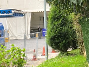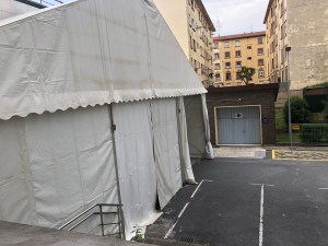 Durante unos dias, (noticia más detallada en la web BarakaldoDigital) la entrada se hará por una carpa habilitada a tal efecto en el mismo espacio de parking para pacientes y acompañantes de urgencias existente. (ver fotos adjuntas)